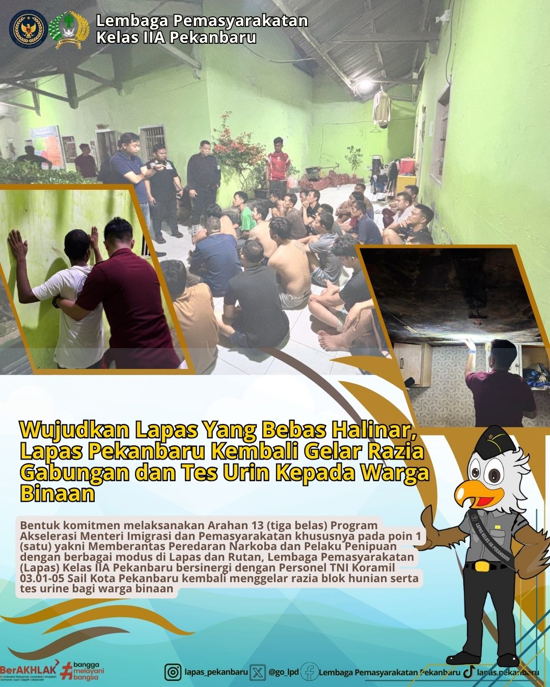 Wujudkan Lapas Yang Bebas Halinar, Lapas Pekanbaru Kembali Gelar Razia Gabungan dan Tes Urin Kepada Warga Binaan