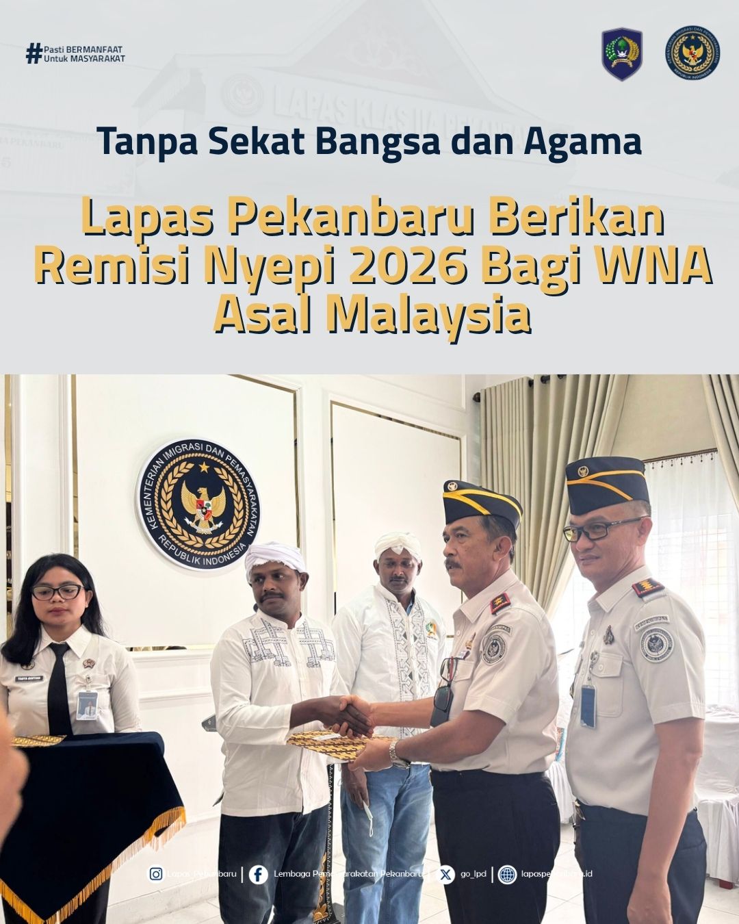Khidmat Idulfitri di Lapas Pekanbaru, 1.414 Warga Binaan Terima Remisi, 5 Langsung Bebas