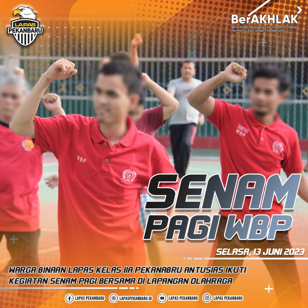 INFO_PAS|PEKANBARU| Lembaga Pemasyarakatan Kelas IIA Pekanbaru menggelar kegiatan senam sehat yang melibatkan Warga Binaan Pemasyarakatan (WBP) dan beberapa petugas pengamanan, Selasa (13/06/2023).