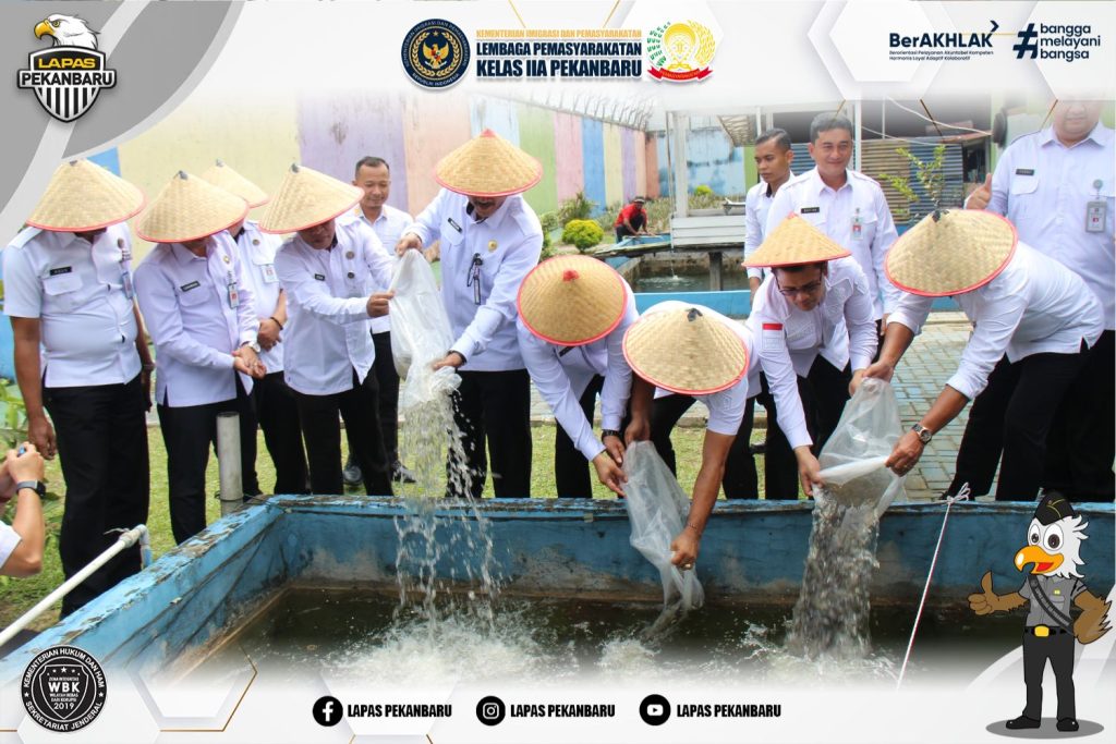 “Alhamdulillah, hari ini kita bersama-sama melakukan penaburan benih ikan patin di Lapas Kelas IIA Pekanbaru. Tentunya ini merupakan tindak lanjut program pembinaan bagi Warga Binaan Pemasyarakatan (WBP) dan merupakan bentuk kehadiran pemasyarakatan dalam mendukung ketahanan pangan.” Ia juga menambahkan bahwa hasil panen ikan patin ini akan dinikmati oleh WBP melalui dapur Lapas, sebagai bagian dari program peningkatan ketahanan pangan.