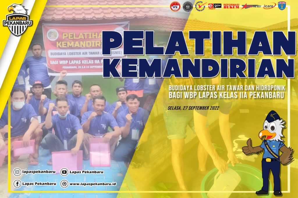 Tahun ini Lapas Kelas IIA Pekanbaru mendapatkan 20 paket kegiatan pelatihan kemandirian secara bertahap yang harus dijalankan dan saat ini sudah 10 paket pelatihan kemandirian yang telah terlaksana termasuk 2 pelatihan yang baru saja selesai dilakukan yaitu Pelatihan Kemandirian Hidroponik dan Budidaya Lobster Air Tawar.
