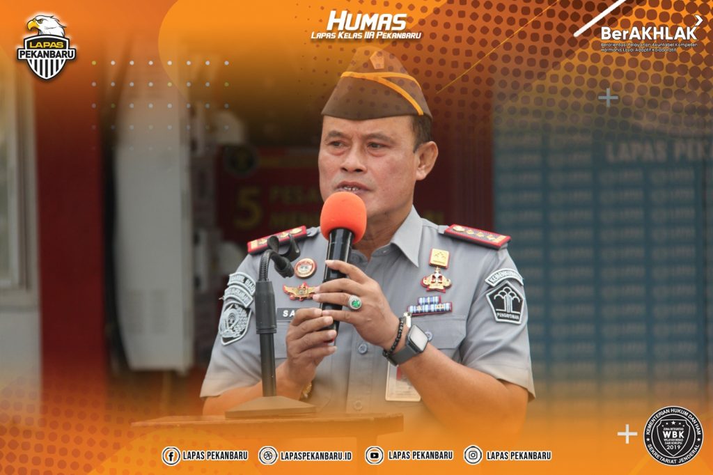 Dipimpin langsung oleh Kalapas Kelas IIA Pekanbaru, Sapto Winarno. Dalam sambutannya Kalapas menyampaikan beberapa hal antara lain ucapan terima kasih kepada seluruh pegawai atas partisipasinya dalam mengikuti kegiatan apel pagi ini.dan bagi yang teman kita yang berhalangan hadir semoga ke depan dapat hadir kembali.