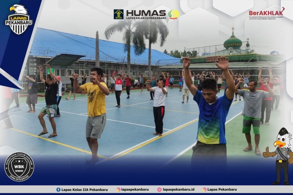 Pekanbaru, INFO_PAS – Warga Binaan Pemasyarakatan (WBP) Lembaga Pemasyarakatan (Lapas) Kelas IIA Pekanbaru melakukan kegiatan senam pagi yang dipandu oleh dua orang instruktur senam, ini merupakan kegiatan rutin setiap hari Selasa dan Sabtu pagi yang terus dilakukan dalam menjaga kesehatan fisik dan juga meningkatkan daya tahan tubuh WBP, Selasa (08/10/2024).