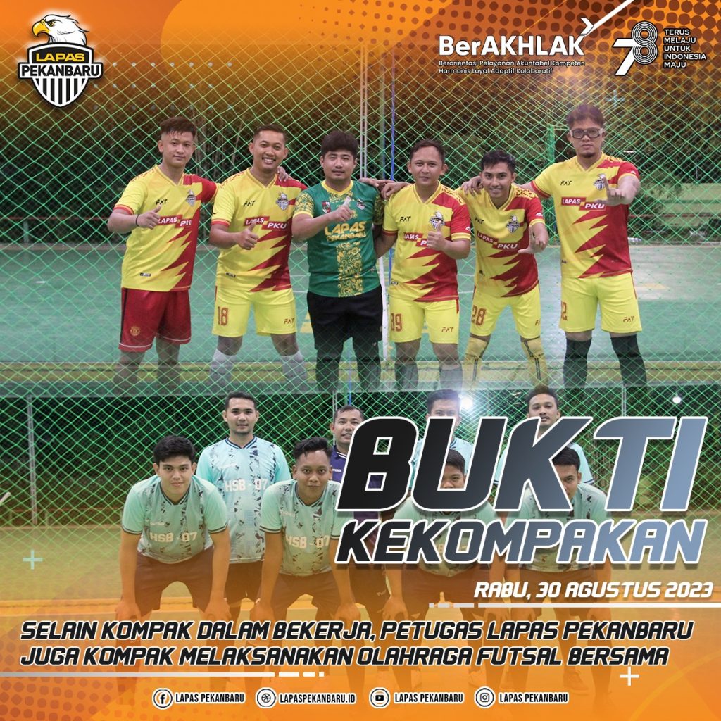 INFO_PAS|PEKANBARU| Olahraga menjadi salah satu pilihan favorit untuk menyegarkan pikiran dan fisik yang jenuh dengan rutinitas. Hal ini juga berlaku bagi para petugas yang ada di Lapas Kelas IIA Pekanbaru baik pengamanan maupun administrasi kantor. Futsal menjadi olahraga yang dipilih oleh petugas, bukan hanya sekedar untuk menjaga keburgaran fisik saja. Namun, olahraga ini juga menjadi ajang untuk saling menjaga sillaturahmi dan keakraban antara petugas, Rabu (30/08/2023).