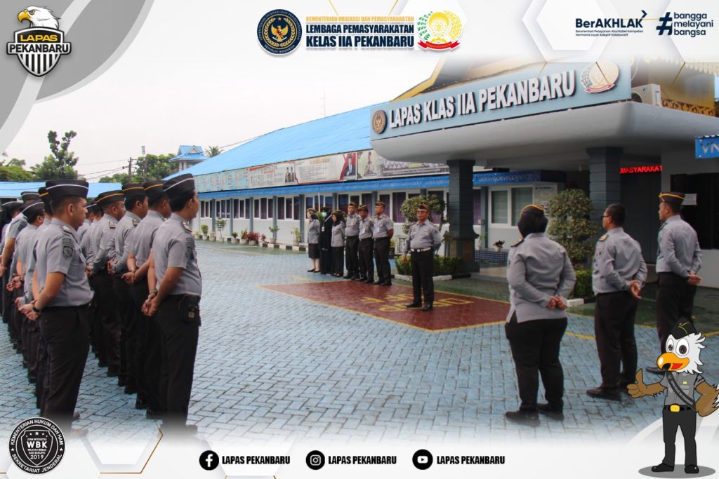 Apel yang dipimpin oleh Kepala Seksi Administrasi Keamanan dan Ketertiban, Harles Marbun, dilaksanakan di Halaman Kantor Lapas Pekanbaru. Apel pagi dihadiri langsung oleh Kepala Lapas Pekanbaru, Erwin Fransiskus Simangunsong, dan diikuti mulai dari Pejabat Struktural, Jabatan Fungsional Tertentu (JFT), Jabatan Fungsional Umum (JFU) sampai dengan satuan pengamanan yang diwakili oleh Petugas Pengamanan Pintu Utama (P2U) serta Komandan Jaga.