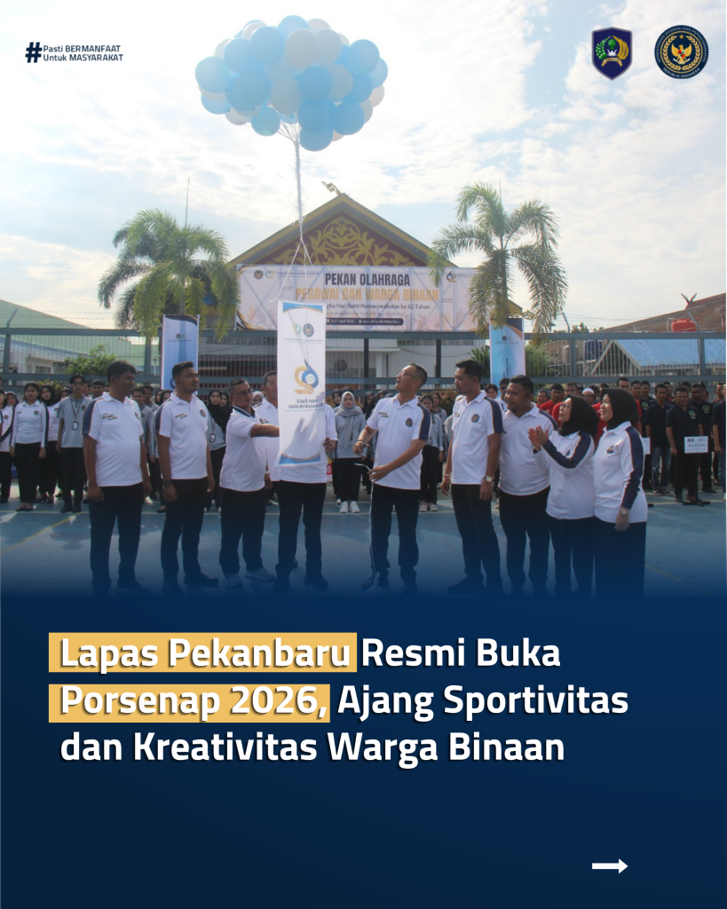 Pekanbaru, INFO_PAS – Lembaga Pemasyarakatan (Lapas) Kelas IIA Pekanbaru menggelar upacara pembukaan Pekan Olahraga dan Seni Narapidana (Porsenap) Tahun 2026 yang berlangsung di Lapangan Olahraga Lapas Pekanbaru. Kegiatan ini merupakan bagian dari rangkaian peringatan Hari Bakti Pemasyarakatan ke-62 Tahun 2026, Jumat (17/04).