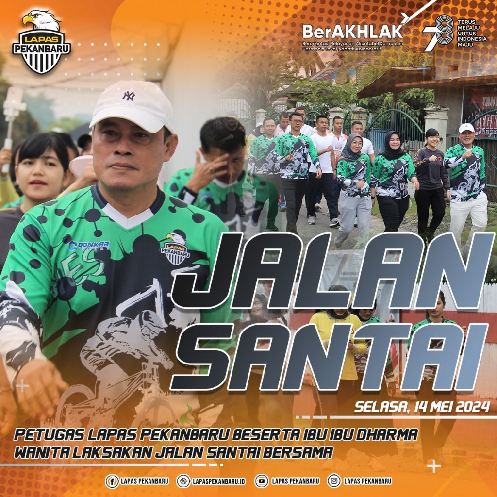 INFO_PAS|PEKANBARU| Lembaga Pemasyrakatan (Lapas) Kelas IIA Pekanbaru melakukan kegiatan olahraga jalan santai. Kegiatan jalan santai kali ini dilakukan bersama sama dengan Ibu-ibu Dharma Wanita Persatuan (DWP) Lapas Kelas IIA Pekanbaru, Sabtu(22/06/2024)