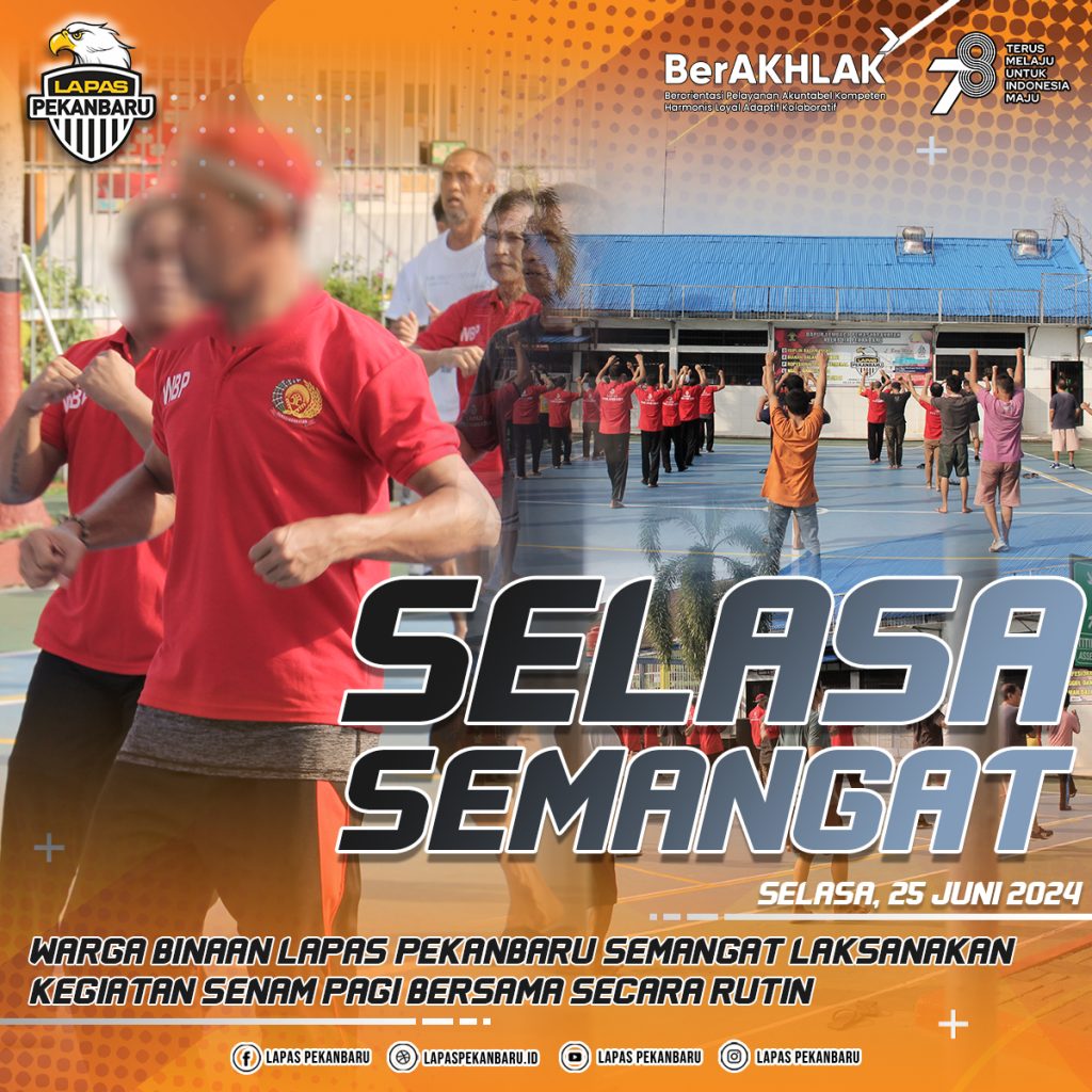 Pekanbaru, INFO_PAS – Sebagai langkah menjaga imunitas tubuh warga binaan agar selalu prima, Lembaga Pemasyarakatan (Lapas) Kelas IIA Pekanbaru menggelar senam sehat rutin yang berlangsung di Lapangan Olahraga Lapas Kelas IIA Pekanbaru, Selasa (25/06/2024).