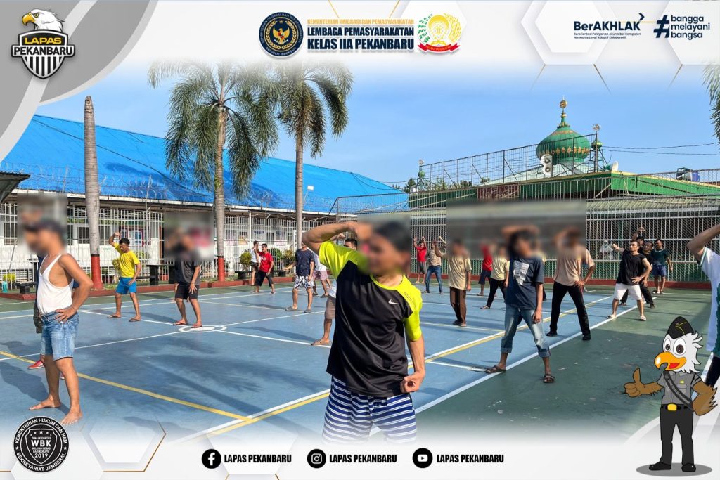 INFO_PAS |PEKANBARU| Pagi ini selasa (11//02) WBP warga binaan Lapas Pekanbaru kembali mengikuti olah raga senam pagi. Olah raga ini banyak diminati karena merupakan salah satu kegiatan yang dapat meningkatkan kesehatan fisik dan mental manusia. Kegiatan ini diadakan di halaman olah raga Lapas.