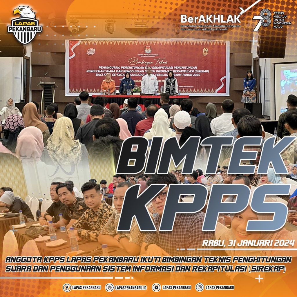 Pekanbaru, INFO_PAS – Lembaga Pemasyarakatan (Lapas) Kelas IIA Pekanbaru terus berkomitmen untuk mendukung proses demokrasi di tanah air dengan mengikuti bimbingan teknis (Bimtek) bagi Kelompok Penyelenggara Pemungutan Suara (KPPS) Pemilu 2024, Rabu (31/01/2024).