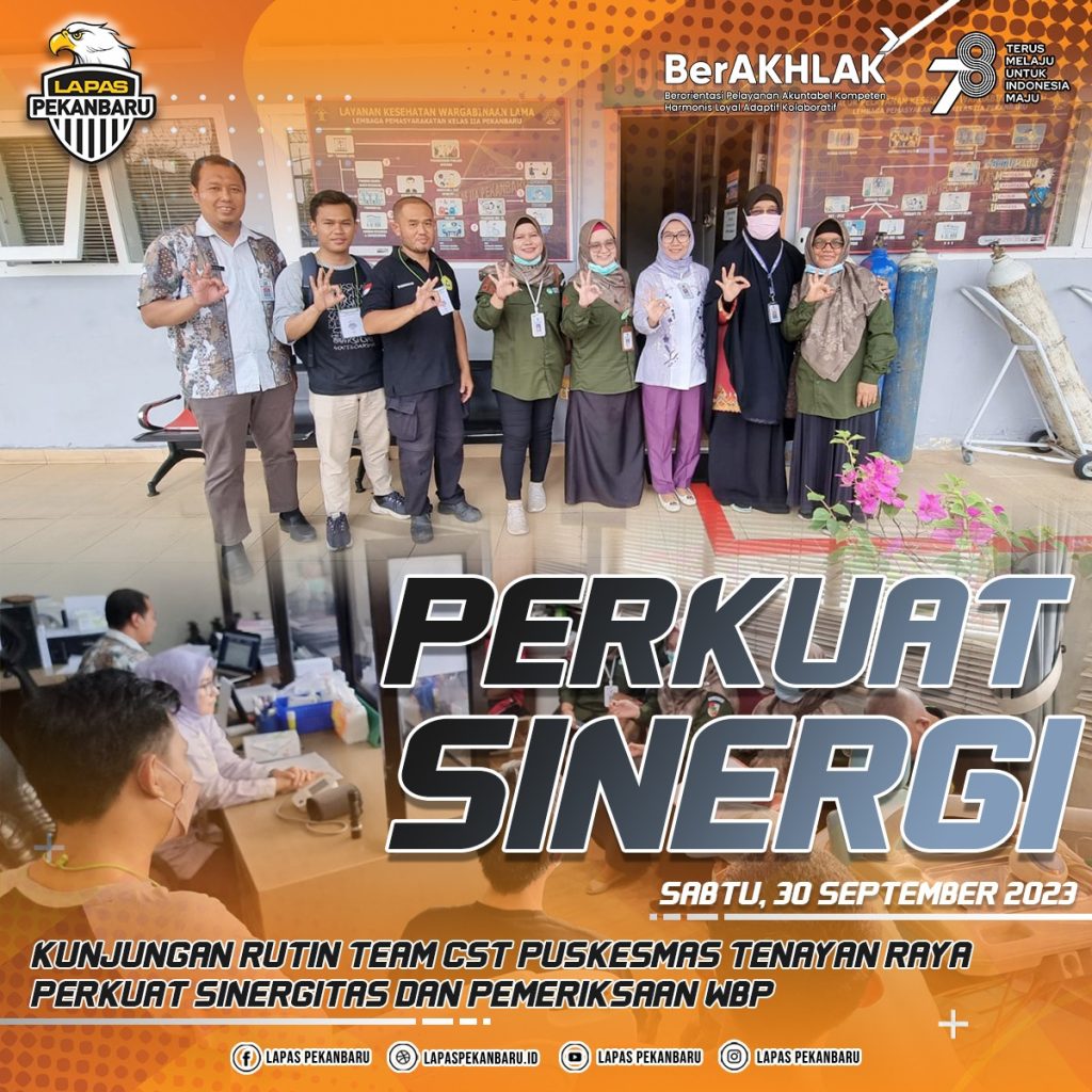 INFO_PAS|PEKANBARU| Lapas Kelas II A Pekanbaru menerima kunjungan rutin dari team CST (Care, Support,Treatment) puskesmas tenayan raya yang sudah lama menjadi mitra kerja pelayanan bidang kesehatan kepada warga binaan pemasyarakatan Lapas Pekanbaru Sabtu (30/09/23).